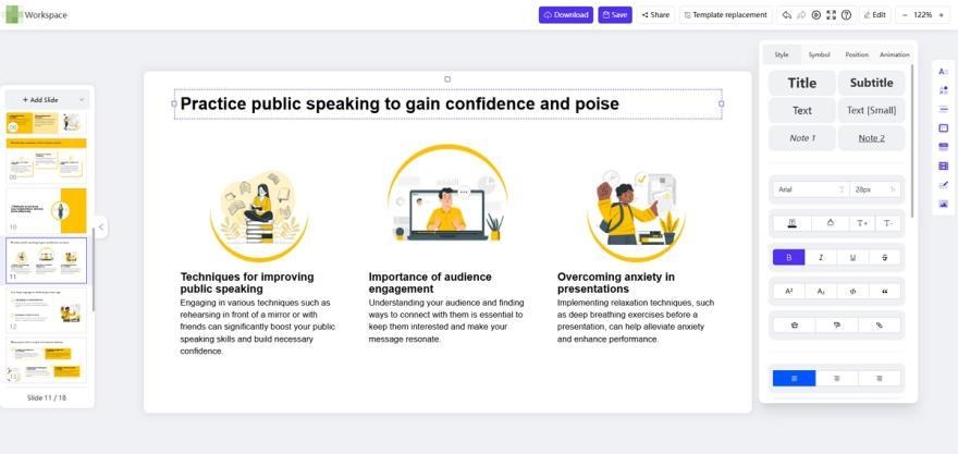 WorkPPT goes beyond basic AI-generated presentations by providing users with plenty of options for customization. From choosing fonts and color schemes to adding multimedia elements like images, videos, and charts, users can fully personalize their presentations. This flexibility ensures that your presentation stands out and aligns with your brand identity.